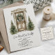 Lorsque votre porte d'entrée se fait une beauté, elle mérite son moment. Cette carte de changement d'adresse pour les fêtes, pleine de charme, présente une porte en bois ornée d'une couronne, flanquée de deux arbres parfaitement taillés - car rien ne dit "nous avons déménagé" comme des lumières scintillantes et une verdure de bon goût.
