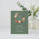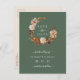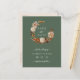 Cette élégante carte de rendez-vous présente une belle couronne de terre cuite aquarelle, de feuilles et de fleurs taupe et brunes sur un fond vert sauge avec du texte blanc. Le dos est taupe avec du texte marron qui se coordonne avec l'illustration sur le devant. Cela fait partie de la collection Romance d'Automne.