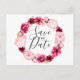 Carte Postale Faire-part Couronne Fleurie Bourguignon et Rose Pâle Save the