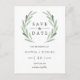 Carte postale simple et rustique de mariage Épargnez la date avec une illustration florale aquarelle avec une couronne de branches d'olivier vert. Ceci est parfait pour les événements de printemps, d'été et de plage. Pour une personnalisation plus avancée de ce design, veuillez cliquer sur le bouton "Personnaliser" ci-dessus ! Les articles assortis sont également disponibles.