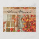 L'automne quitte le pays rustique Nous avons déménagé carte postale faire-part mobile. Envoyez votre nouvelle adresse à votre famille et à vos amis. De belles couleurs de feuilles orange, rouge et jaune escalade sur le côté de la maison. Vintage fenêtre blanche rétro et persienne bleue. Photographie d'une maison en briques Brown, copyright Marg Seregelyi Photography.