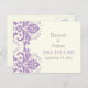 Carte Postale Faire-part Damask lavande, gris, mariage d'ivoire Enregistrer