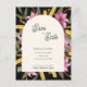 Announce your special day with dramatic elegance using this dark blush pink lily arched save the date card. Featuring vibrant watercolor lilies, golden yellow blooms, and lush greenery set against a rich black background, this design highlights a modern curved arch layout for a refined and luxurious look.