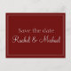 Cette carte postale d'annonce de date à retenir rouge et gris attrayante et charmante, a un fond rouge avec une police grise. Personnalisez la vôtre dès aujourd'hui !