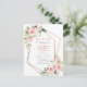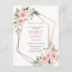Faites savoir à vos invités votre changement de date avec style grâce à cette carte de notification représentant une fausse rose dorée en cuivre géométrique ornée de roses et de fleurs aquarelles rose cuivré. Les noms des mariés et certains détails du mariage sont dans une couleur cuivre assortie. Le verso de la carte permet d'ajouter votre message personnel. Copyright Elegant Invites. Tous droits réservés.