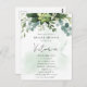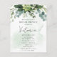Cette élégante et moderne invitation de babille de mariage présente un magnifique dessin d'eucalyptus à l'aquarelle dans des nuances de vert, de gris et de blanc qui capturent parfaitement la beauté de la nature.