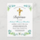 Carte Postale Faire-part de baptême garçon croix or bleu élégant