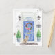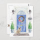 Annoncez votre nouvelle adresse avec notre faire-part élégante avec un chat Ragdoll, une porte d'entrée bleue, un tapis de bienvenue, une ardoise, des topiaires et une couronne fleurie posée sur un arrière - plan en brique grise.
