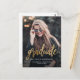Carte postale moderne faire-part graduation avec photo verticale personnalisée. Le mot "diplômé" apparaît dans le script de faux feuille d'or, avec le nom du diplômé, l'école et l'année de graduation ci-dessous en blanc sans serif. Remplacez facilement l'image de l'échantillon par la photo de votre diplômé. Un écran de dégradé noir permet de s'assurer que le texte s'affiche. Personnalisez l'adresse de retour au verso. Idéal pour obtenir un diplôme d'études secondaires ou collégiales.