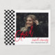 Cette faire-part élégante et sophistiquée présente une photo de l'étudiant diplômé de l'université ou du lycée. Le design comprend un script rouge contemporain écrit à la main et superposé sur les photos. Le texte au verso de la carte peut être customisé pour créer un faire-part de graduation de base ou une invitation de partie pour le diplômé.