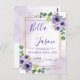 Carte Postale Faire-part de mariage à cadre d'or blanc violet
