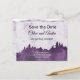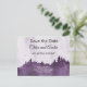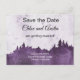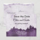 Cartes de Faire-Part de mariage avec un paysage de teinte de joaillerie violette lavé à l'aquarelle rustique. Personnalisez avec vos propres informations.