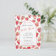 Invitation de mariage en aquarelle moderne et mignonne avec fraise. Le verso présente un texte assorti et plus de fraises pour une dose supplémentaire de mignonnerie. Personnalisez le texte pour l'adapter à votre célébration. Œuvre originale de Nic Squirrell
