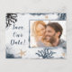Carte Postale Faire part de mariage bleu corail nautique aquarel
