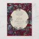 Cette carte de faire-part de mariage bordeaux présente des fleurs violettes et rouges, de la verdure et un ovale encadré d'or et un script doré. Personnalisez avec les détails de votre événement de mariage.