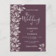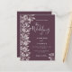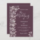 Un faire-part de mariage botanique branché en cassis, violet profond. Décoré de feuillage et de sprigs couleur rose poussiéreux. Écriture manuscrite moderne à grande main, typographie avec le texte : Le mariage de. Modèles pour vos prénoms et les détails mariages. Texte blanc. Retour : arrière - plan couleur cassis. Conseil : Si vous ne voulez pas qu'il ressemble à une carte postale, cliquez sur customiser, allez à l'arrière et retirez le séparateur et le timbre postal.