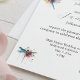 Ce faire-part de mariage enchanteur est joliment décoré avec des libellules colorées d'aquarelle, symbolisant l'amour, le changement et de nouveaux débuts. Délicatement peintes dans des tons chatoyants de bleu, violet, vert et jaune, les libellules flottent gracieusement à travers le design, créant une atmosphère fantaisiste et romantique. Les noms du couple sont présentés dans une élégante police romaine d’emeline et de garamond, assurant un look raffiné et accueillant. Cette invitation donne le ton parfait pour une célébration magique et inoubliable.