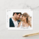 Cela fait longtemps que cela arrive, mais sans plus tarder, vous deux tourtereaux êtes officiellement mariés ! Cette annonce de mariage sera sûrement une bienvenue charmante dans les boîtes aux lettres de votre famille et de vos amis. Partagez votre escapade, l'annonce de votre mariage avec cette belle écriture manuscrite qui est simple, minimaliste et pourtant super chic. Une façon moderne et pourtant traditionnelle de partager la nouvelle de votre bonheur éternel, ajoutez une photo du jour spécial, et hop, cette carte postale est envoyée.