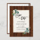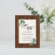 Cette carte de faire-part de mariage présente des feuilles botaniques vertes à l'aquarelle avec un cadre rectangulaire doré sur un fond en bois rustique. Pour une personnalisation plus avancée de ce design, veuillez cliquer sur le lien Personnaliser davantage pour modifier la police, la taille et la couleur.