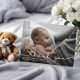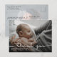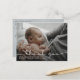 Carte postale moderne de faire-part de naissance de bébé. Conception avec écriture merci, une seule photo du bébé, statistiques de naissance, date et un nom sur le devant. Personnalisez avec une autre photo et votre message de remerciement au dos.