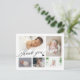 Carte postale de faire-part de naissance de bébé avec un collage photo moderne. Conception avec un script merci, 5 photos du bébé sur le devant. Personnalisez avec votre message de remerciement, le nom du bébé et les informations de naissance au dos.