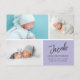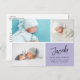 Cette carte postale faire-part de naissance moderne et élégante présente le nom de votre nouveau-né écrit en calligraphie moderne avec vos photos préférées sur une grille. Nom complet et statistiques de naissance. Il y a de l'espace à l'arrière de la carte postale pour écrire un message personnalisé ou supprimer le texte du message manuscrit.