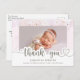 Cette carte postale de remerciement de naissance de bébé fille photo rose moderne comporte un texte de remerciement calligraphié et les statistiques de naissance sur le devant. Le verso comprend un message charmant de toute la famille. Personnalisez-le facilement avec vos détails et la photo de votre bébé.