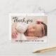 Annoncez la naissance de votre bébé et remerciez votre famille et vos amis pour leurs cadeaux en même temps. Conception avec photo horizontale unique du bébé, les statistiques de naissance et le nom du bébé sur le devant. Personnalisez avec votre message à l'arrière. Pour modifier ce modèle, cliquez sur customiser plus loin.
