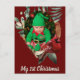Envoyez à votre famille et à vos amis cette adorable carte de voeux saisonnière "Mon 1er Noël" pour célébrer la naissance de votre bébé et le 1er Noël de votre bébé pendant que vous restez en contact avec cette période de fêtes. Cette carte de Noël Faire-part de naissance pour les nouveaux parents présente un joli cadre ovale avec verdure et un cardinal rouge. Insérez une photo de votre bébé sur le devant et customisez avec les statistiques de naissance de votre bébé. Carte parfaite à envoyer à des proches d'un nouveau parent.