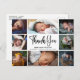 Carte postale de faire-part de naissance moderne pour bébé. Conception avec texte de remerciement, 8 photos du bébé, statistiques de naissance, date et nom sur le devant. Personnalisez avec votre message de remerciement au verso.