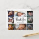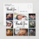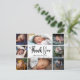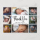 Carte postale de faire-part de naissance de bébé avec collage de photos moderne. Conception avec un script de remerciement, 8 photos du bébé, statistiques de naissance, date et nom sur le devant. Personnalisez avec votre message de remerciement au verso.