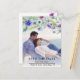 "Carte postale 'Guirlande de fleurs sauvages à l'aquarelle' pour annoncer la date de votre événement. C'est une charmante carte postale que vous pouvez envoyer pour informer vos proches de votre événement spécial à venir. Le devant de la carte comporte une belle photo du couple, ornée d'une jolie guirlande florale réalisée avec des fleurs sauvages à l'aquarelle dans la partie supérieure. La partie inférieure du verso de la carte présente également le même charmant arrangement floral. C'est une façon charmante d'inviter vos proches à réserver la date et à se joindre à vous pour célébrer votre grand jour."