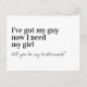 Faites savoir à votre meilleure amie que vous voulez qu'elle soit à vos côtés avec cette carte de demande de témoin humoristique "J'ai trouvé mon homme, maintenant il me faut ma fille"
