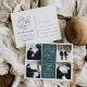 Simple et élégante, notre carte postale "Romantic Request" pour annoncer votre mariage comporte quatre de vos photos de fiançailles préférées disposées en carré, avec les détails de votre mariage au centre en blanc sur fond vert forêt riche. "Save the date" apparaît en typographie script blanche avec un cœur chic intégré au design. Personnalisez avec vos informations de mariage, y compris les noms, la date du mariage et le lieu, et ajoutez des détails supplémentaires au verso, y compris votre site web de mariage et votre adresse de retour.
