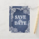 Carte Postale Faire-part Dentelle Fleurie Denim & Blanc Élégant Sauvegarder