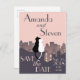 Enregistrez la mise en page Date, avec élément chats et vue urbaine. Design de dessin, adapté aux annonces mariages, fiançailles. Le texte doit être personnalisé.