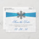 Carte Postale Faire-part Diamante Snowflake & Blue Ribbon Mariage d'hiver
