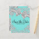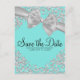 Carte Postale Faire-part Diamants Bleu Gros Nœud Blanc Sauver la Date