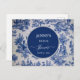 Carte Postale Faire-part Douce Nuit de Noces Toile de Jouy Bleue et Blanche
