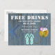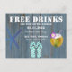 Mignonne enregistrer les dates d'un mariage à la plage dans un drôle de design "Boissons gratuites (et nous nous marions". L'établissement propose un arrière - plan rustique en bois avec des étoiles de mer, des tongs et un cocktail de noix de coco.