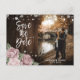 Rose rustique poussiéreux et photo de mariage rose vif enregistrez la carte postale datant avec du bois rustique orné de roses, le souffle du bébé et des lampes à cordes. Conception de carte idéale pour votre rose rustique poussiéreux et votre mariage rose vif.