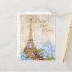 Une belle image de Tour Eiffel de l'exposition de Paris en 1889 avec de beaux hortensias vintages bleus et blancs sur un arrière - plan texturisé avec un signe faible de damassé florale font une belle conception romantique pour ce mariage ou d'autres économies d'occasion la carte postale de date. Le dos est prêt à customiser avec votre propre information. Les articles assortis et d'autres conceptions de Paris de cru sont disponibles dans mon magasin de Zazzle.