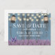 Économies bleues poussiéreuses rustiques de grange de fleurs et de lanternes de lavande les annonces de mariage de date.