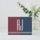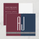 Élégant, simple, contemporain gris-vert, bourgogne et bleu marine mariage enregistrer la date carte postale d'annonce, avec des initiales de monogramme géant à l'avant et calligraphie moderne.