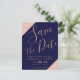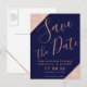 Carte Postale Faire-part Économisez la date en bleu marine et rose gold pai