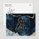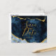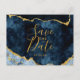 Carte Postale Faire-part Économisez la date en marbre bleu nuit or feuille