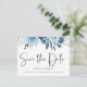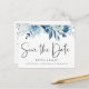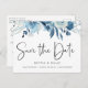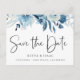Carte Postale Faire-part Elégant bleu bleu marine floral Enregistrer la dat