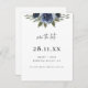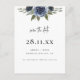 Carte Postale Faire-part Élégant Bleu Marine Fleurs Aquarelle Save the Date