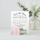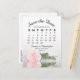 Carte Postale Faire-part Élégant calendrier Mariage Rose rose Enregistrer l