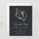 Notify guests of your upcoming destination, beach, or tropical island wedding with these beautiful summer save the date postcards featuring a faux gold foil conch shell illustration on a rich soft black background. Elegant white script and block lettering displays your wedding details (names, wedding date, and location); use the reverse side to share additional details like your wedding website.